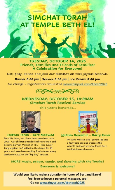 Simchat Torah Festival Service Honoring Bert Madwed and Barry Erner